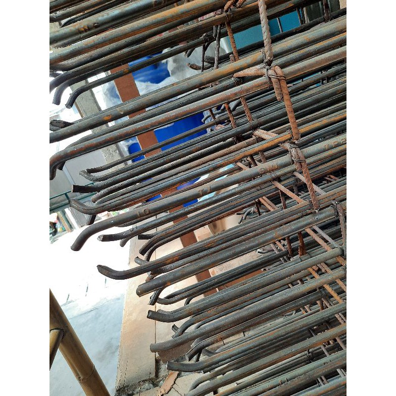 Tiang rumah lantai 1 rencananya tingginya 4 m dan saya hanya merangkai besi tulangan untuk tiang juga hanya 4 m seharusnya minimal 5 m atau bagusnya 5,5 m, karena 1 m untuk stek bagian atas dan 0,5 m untuk bagian bawah, info ini saya dapatkan dari tukang yang bekerja.